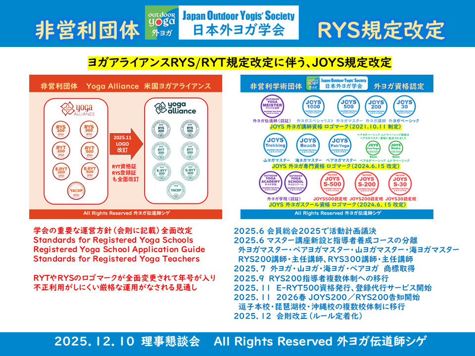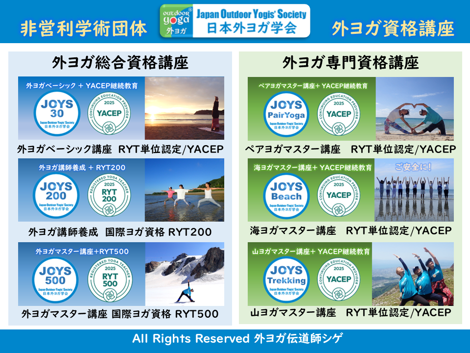 2025年に「世界の外ヨガ学会になる」RYS300認証を受けて、外ヨガカリキュラムが完成したことから、2026年活動方針は、『外ヨガの輪をつなぐ年』といたします。
