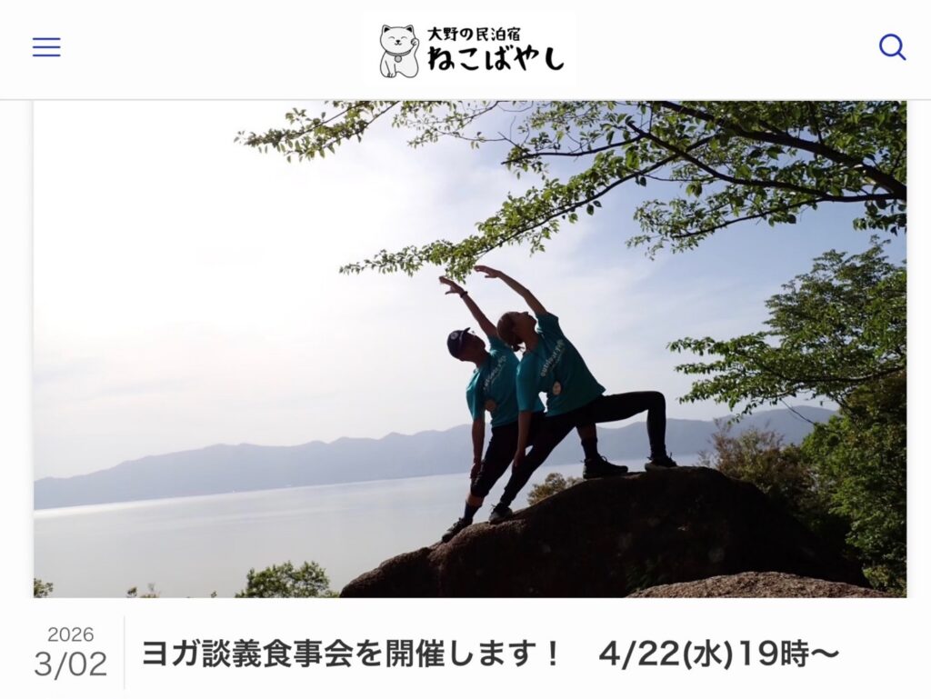 ヨガ談義食事会を開催します! 4/22(水)19時~ | 空き家を活用した大野の民泊宿「ねこばやし」